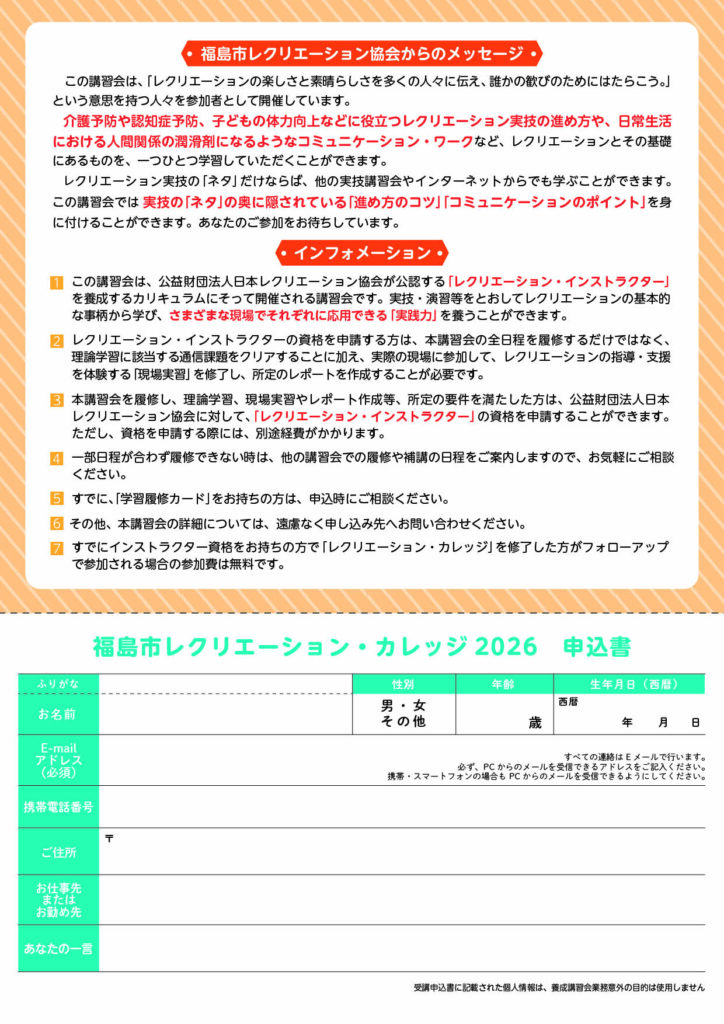 公益財団法人日本レクリエーション協会公認「レクリエーション・インストラクター」養成のための